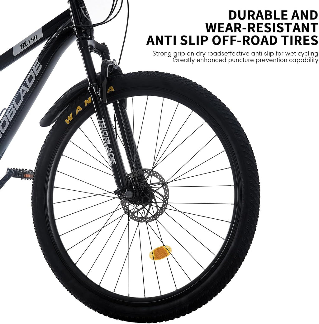 - 【Mountain Bike With Shock Absorbing Front Fork】- These all terrain MTB feature with shock absorbing front fork,The thickened outer wall is more resistant to shocks. The shock absorbers help absorb shocks. The parallel bars can adapt to pressure road conditions. Greatly improve the comfort during riding and allows people to enjoy riding