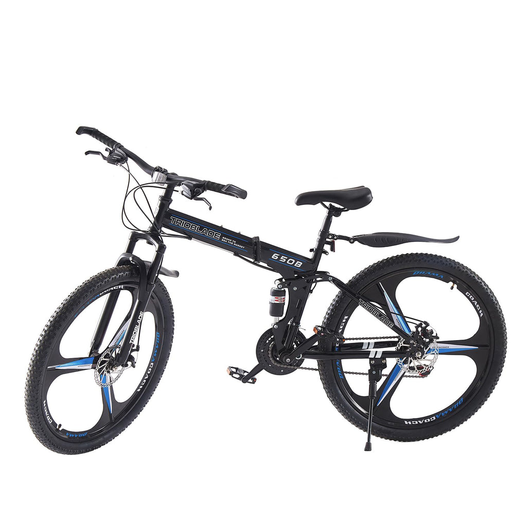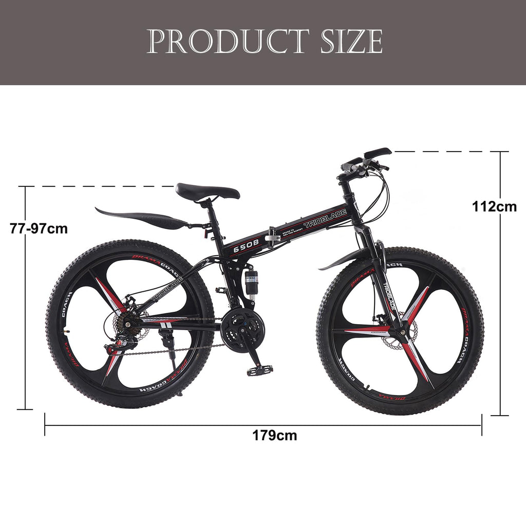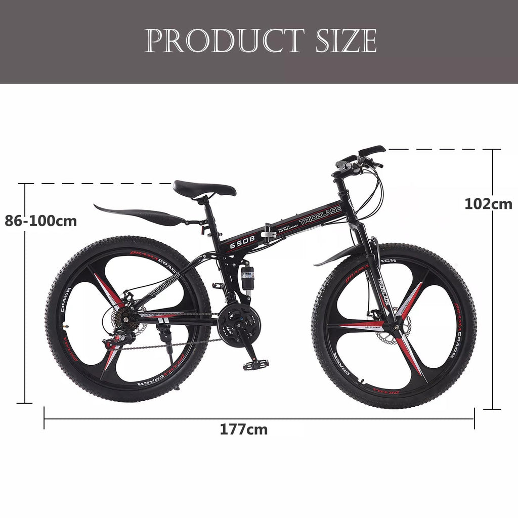 - 【3 Spoke Foldable Design】 - The 27.5 inch foldable mountain bike can be opened and closed in seconds, which is convenient for storage and carrying. High quality material, not easy to rust. The maximum load capacity of bicycle is 330 LBS, which is suitable for daily commuting and outdoor riding