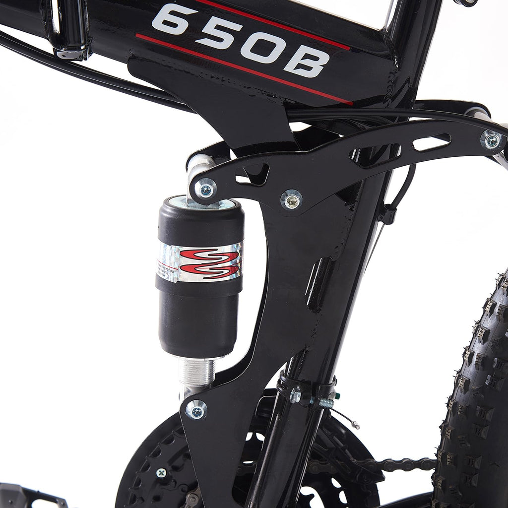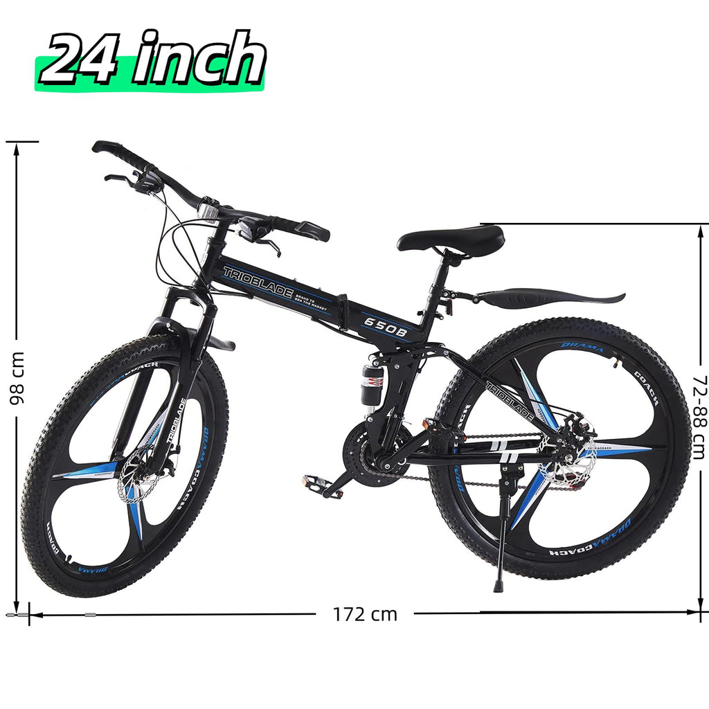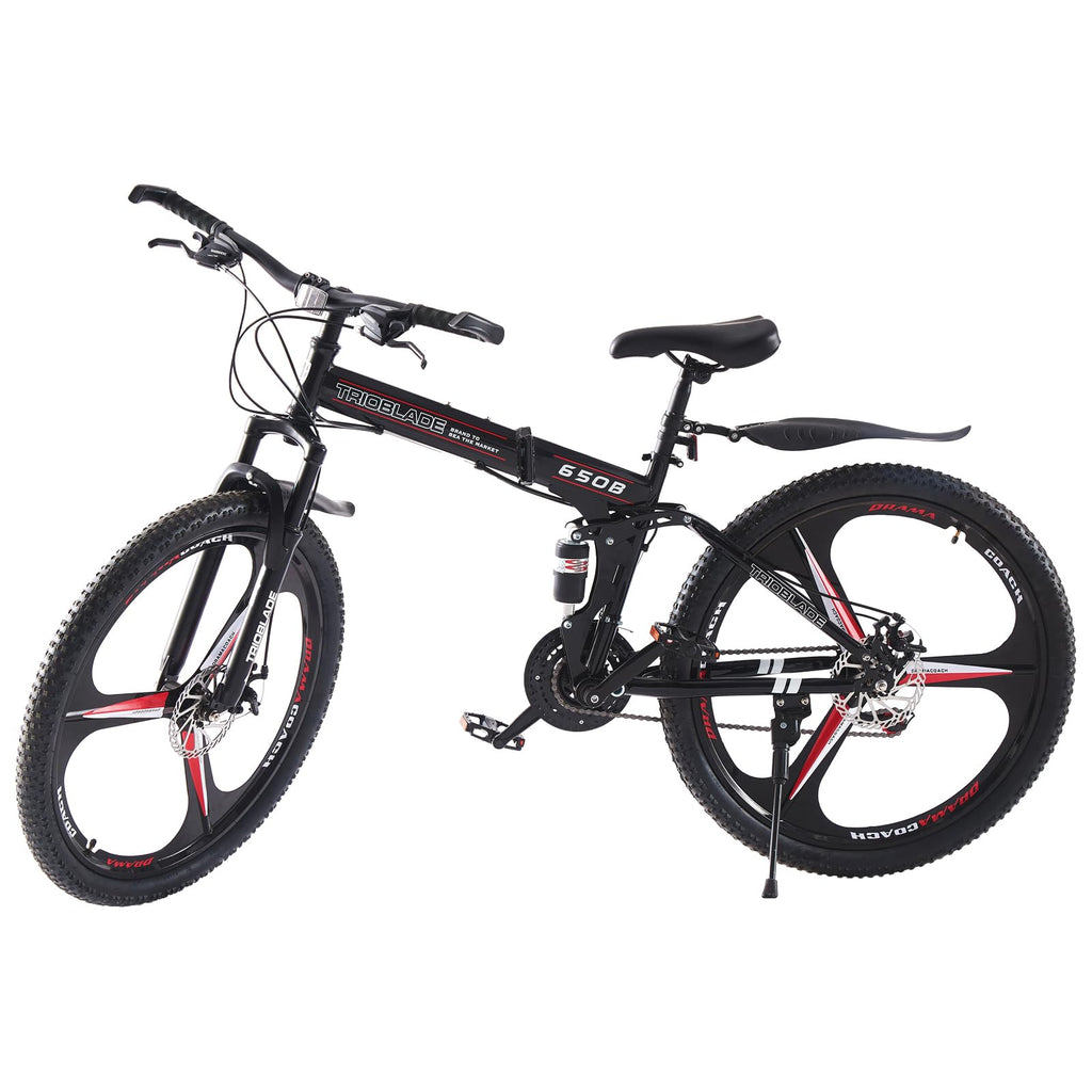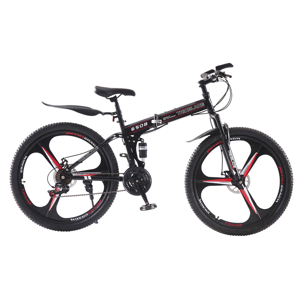 - 【3 Spoke Foldable Design】 - The 27.5 inch foldable mountain bike can be opened and closed in seconds, which is convenient for storage and carrying. High quality material, not easy to rust. The maximum load capacity of bicycle is 330 LBS, which is suitable for daily commuting and outdoor riding