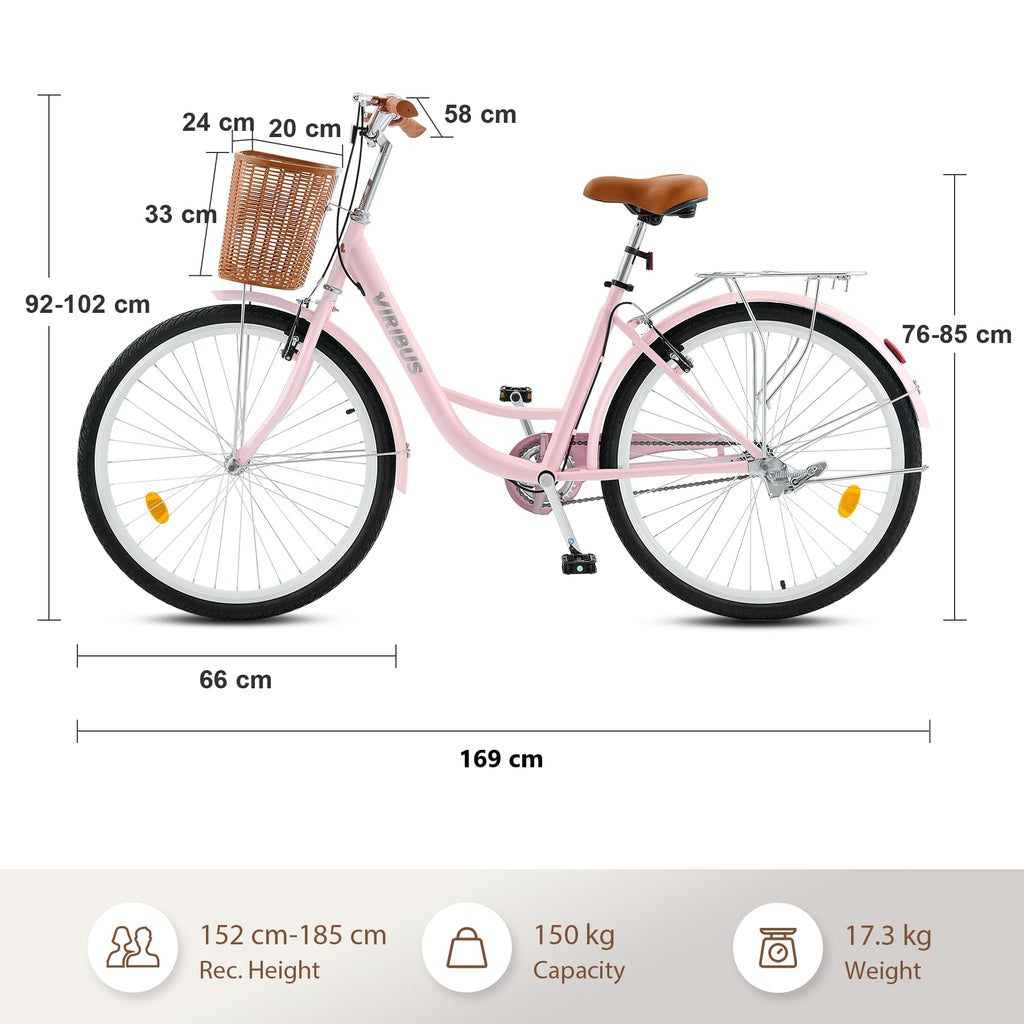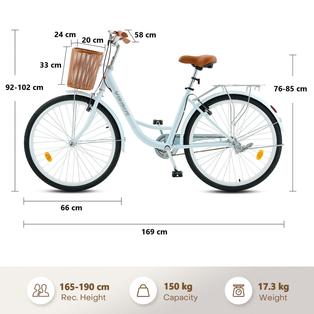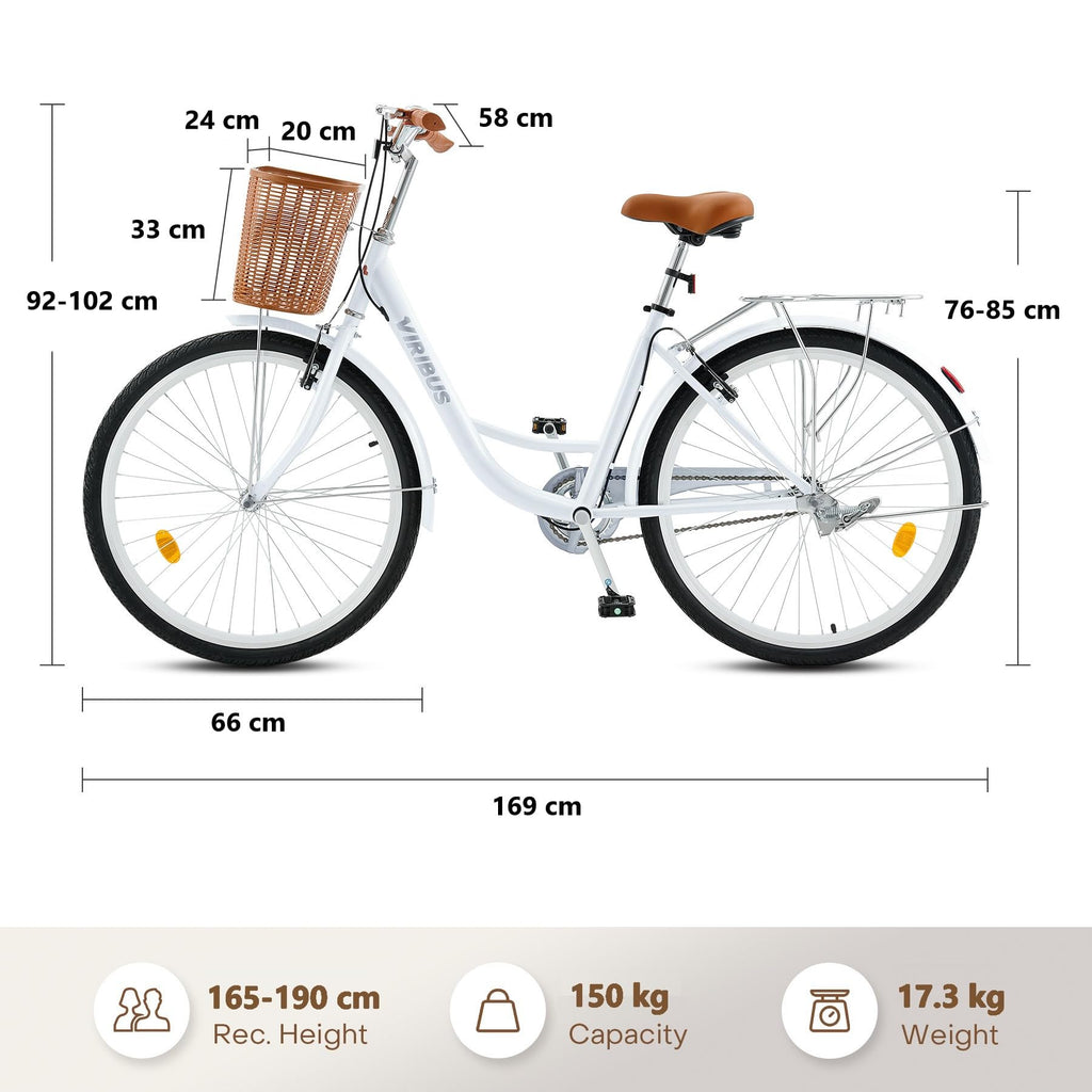 - 【Vintage Ladies Bike】This Viribus women’s bike with basket is the perfect way to travel in style and safety; its combination of a retro Dutch bike look with modern features creates a unique city bike that stands out from the crowd