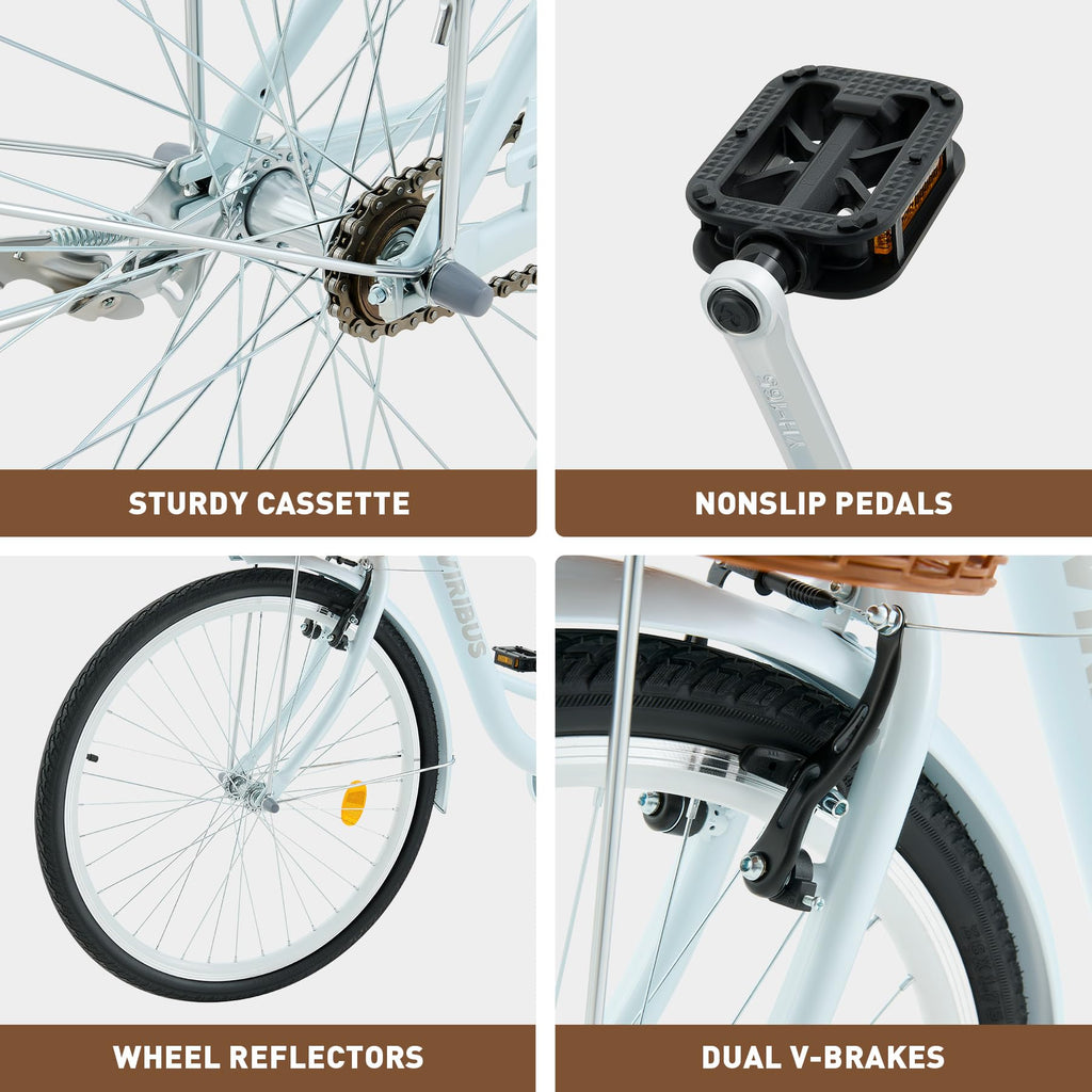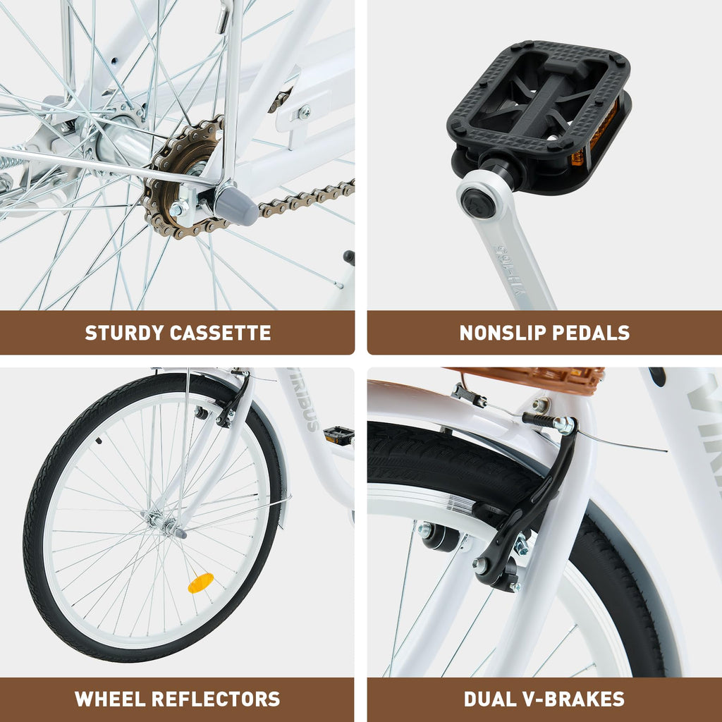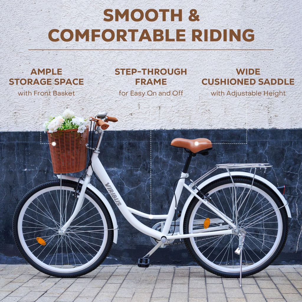 - 【Vintage Ladies Bike】This Viribus women’s bike with basket is the perfect way to travel in style and safety; its combination of a retro Dutch bike look with modern features creates a unique city bike that stands out from the crowd